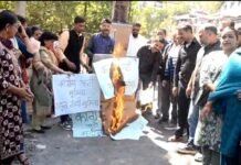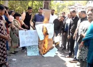 नैनीताल -भाजपा महिला मोर्चा ने फूंका कांग्रेस का पुतला