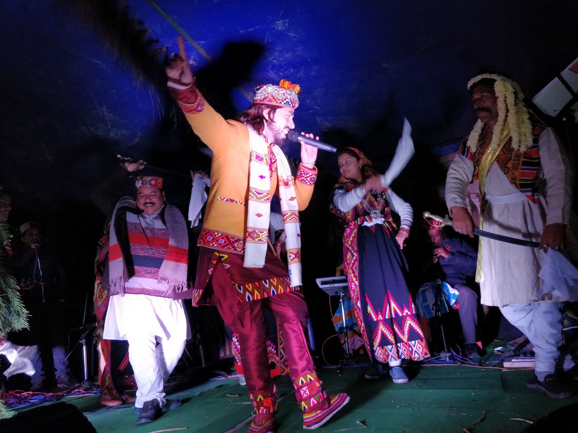 कैप्शन : जीरो डिग्री फेस्टिवल जिभी में कार्यक्रम पेश करते हुए लोकगायक इंद्रजीत