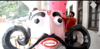 नैनीताल-दशहरे पर रावण, कुम्भकर्ण, मेघनाथ के पुतले बनाने में जुटे कारीगर