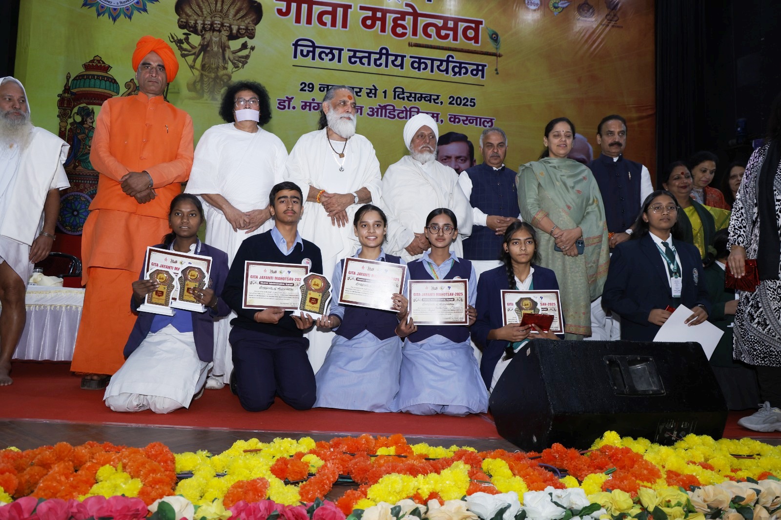 गीता मनीषी स्वामी ज्ञानानंद महाराज ने कहा कि श्रीमद भगवत गीता सबके लिए है। यह भारत का गौरव है। इसमें पूरी मानवता के लिए संदेश है। गीता अर्जुन के लिए समाधान बनी, आज यह विश्व के लिए समाधान है। पूर्व राष्ट्रपति एपीजे अब्दुल कलाम नियमित रूप से गीता पढ़ते थे। उन्होंने कहा कि बच्चों में कैसे नशे की वृतियां दूर हों, उनमें अच्छे संस्कार कैसे आएं, सकारात्मक ऊर्जा का संचार कैसे हो, इसी के निमित्त गीता महोत्सव का आयोजन किया जा रहा है। आज समाज में सदभावना और सामाजिक समरसता की जरूरत है। उन्होंने बच्चों से आह्वान किया कि वे रात को सोने से पहले मोबाइल की आदत को छोडक़र गीता के श्लोक का उच्चारण करें।