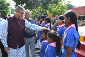 हरियाणा के राज्यपाल असीम कुमार घोष का बच्चों से विशेष स्नेह है उन्होंने निरीक्षण के दौरान क्लास रूम में जाकर बच्चों से किया संवाद, शिक्षा की गुणवत्ता को परखा और अपने हाथों से बच्चों को प्रोटीन बार वितरित किए। स्कूली बच्चें राज्यपाल का स्नेह पाकर बेहद खुश नजर आए। राज्यपाल बच्चों की नोटबुक में लिखाई और चित्र सहित कहानी लिखी हुई देखकर बेहद खुश थे। राज्यपाल ने बच्चों से संवाद के दौरान स्कूल की व्यवस्था के बारे में जानकारी ली। जिसको लेकर राज्यपाल ने प्रसन्नता जाहिर की। राज्यपाल ने इस दौरान बच्चों के नाखून भी चैक किए और उन्हें स्वच्छता का संदेश दिया।