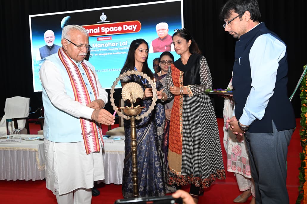 करनाल – राष्ट्रीय अंतरिक्ष दिवस के मौके पर करनाल के मंगलसेन सभागार में आयोजित कार्यक्रम में केंद्रीय ऊर्जा, आवासन एवं शहरी कार्य मंत्री मनोहर लाल ने बतौर मुख्य अतिथि शिरकत की। इस दौरान संबोधित करते हुए उन्होंने कहा कि भारत अंतरिक्ष विज्ञान क्षेत्र में तेजी से तरक्की कर रहा है। आज ही के दिन 2023 में चंद्रयान-तीन को सफलता मिली थी। इसी के चलते राष्ट्रीय अंतरिक्ष दिवस मनाए जाने की घोषणा की गई थी। इस बार यह राष्ट्रीय अंतरिक्ष दिवस करनाल में मनाए जाने का फैसला लिया गया। इस मौके पर हरियाणा के शिक्षा मंत्री महिपाल ढांडा भी मौजूद रहे।