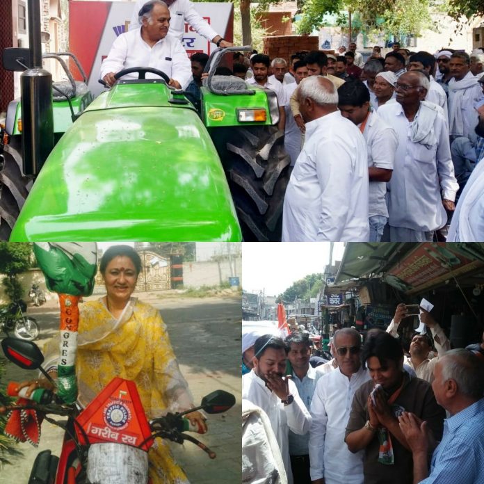 करनाल – लोकसभा चुनाव जैसे जैसे नज़दीक आ रहा है , प्रत्याशी लोगों से सम्पर्क के तरह-तरह के तरीके अपना रहे हैं l प्रत्याशियों के पूरे परिवार वोट मांगने में एक दूसरे प्रत्याशियों से बढ़ चढ़कर काम कर रहे हैं l जिसके चलते आज कांग्रेस प्रत्याशी कुलदीप शर्मा ने ट्रेक्टर, उनकी पत्नी नीलम शर्मा ने मोटरसाइकिल और बेटे चाणक्य ने पैदल चलकर मांगे वोट। कांग्रेस प्रत्याशी अपने परिवार संग चुनाव प्रचार अभियान में बड़ी तेजी के साथ आगे बढ़ रहे हैं। अलग-अलग विधानसभाओं में उनके अलावा उनकी पत्नी और बेटे भी लोगों से सम्पर्क साध रहे हैं। आज कांग्रेस प्रत्याशी कुलदीप शर्मा ने ट्रैक्टर चलाकर जहां लोगों को प्रभावित किया वहीं पर उनकी पत्नी नीलम शर्मा भी गरीब रथ बनाई मोटरसाइकिल पर सवार होकर लोगों के बीच पहुंची। जिससे लोग खासे प्रभावित दिखाई दिए। इसके साथ ही कांग्रेस प्रत्याशी कुलदीप शर्मा के बेटे चाणक्य शर्मा ने आज करनाल सदर बाजार में किया पैदल रोड शो लोगो, दुकानदारों, व्यापारियों से वोट मांगे। उन्होंने कहा कि वह जनता के बीच के नेता हैं और हमेशा जनता के बीच में रहते आए हैं। इस मौके पर उनके साथ पूर्व कांग्रेस विधायक सुमिता सिंह, पूर्व अल्पसंख्यक आयोग चेयरमैन त्रिलोचन सिंह, पूर्व जिला अध्यक्ष सुरेंद्र नरवाल, पूर्व पार्षद जोगिंद्र चौहान सहित सैंकड़ों कार्यकर्ताओ ने उनके साथ पैदल रोड शो में हिस्सा लिया।