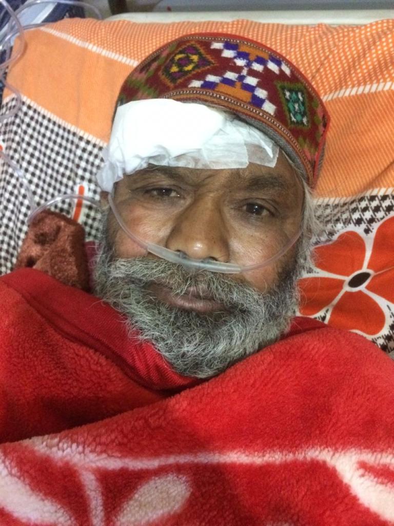 कैप्शन-अस्पताल में उपचाराधीन भालू द्वारा घायल हुए डेंबू राम