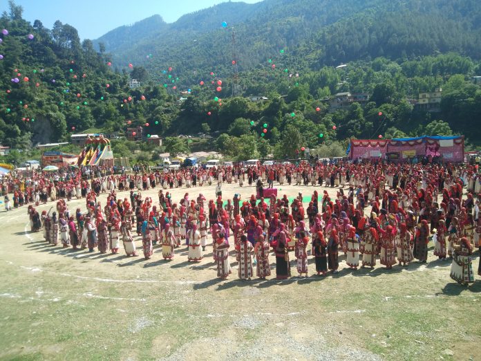 रिपोर्ट-निखिल/मीनाक्षी-सैंज -जिले में इस बार के लोकसभा चुनाव में अधिक से अधिक मतदान हो, इसके लिए जिला निर्वाचन अधिकारी यूनुस कोई कोई कसर नहीं छोडऩा चाहते। इसका जीवंत उदाहरण बजांर विधानसभा क्षेत्र के सैंज मेले के दौरान देखने को मिला, जहां बंजार क्षेत्र की लगभग 1100 महिलाओं ने कुलवी पट्टू व धाठू धातु पहनकर सुसज्जित होकर मैगा नाटी का प्रदर्शन किया। लोकसभा चुनाव के दृष्टिगत जिला और उपमंडल स्तर पर गठित स्वीप टीम के सहयोग से मैगा नाटी का आयोजन किया गया। सैंज मेले में ढोल की थाप पर नाटी की गूंज मानो समूचे बंजार क्षेत्र