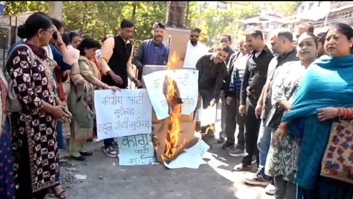 नैनीताल -भाजपा महिला मोर्चा ने फूंका कांग्रेस का पुतला
