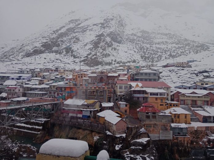 रिपोर्ट – कान्ता पाल /नैनीताल -सीमांत सरहदी जिला चमोली  में मौसम ने एक बार फिर करवट बदली है,देर रात से ही बद्रीनाथ समेत ऊंचाई वाले इलाकों में जमकर बर्फबारी हो रही है बद्रीनाथ, चिनाप घाटी,एरा घाटी, मानपाई बुग्याल, पांगरचुला टॉप, सहित द्रोणागिरि घाटी में फिर हिमपात हुआ है, हेमकुंड साहिब में भी जबरदस्त बर्फबारी हो रही बावजूद इसके  गुरु पथ से बर्फ हटाने का कार्य जारी है, निचले इलाकों में हो रही है,मौसमी बदलाव से तापमान में गिरावट आयी है, कुछ स्थानो पर गरज के साथ ओलावृष्टि हुई है,बारिश और हिमपात से जोशीमठ ,गोपेश्वर ,गैरसैण,गचर  में एकबार फिर से ठंड ने दस्तक दे दी है,वही बर्फबारी व बारिश के बाद सुख चुके जल स्रोतों के रिचार्ज होने से आने वाले दिनो में पेयजल समस्या भी हल हो सकेगी।