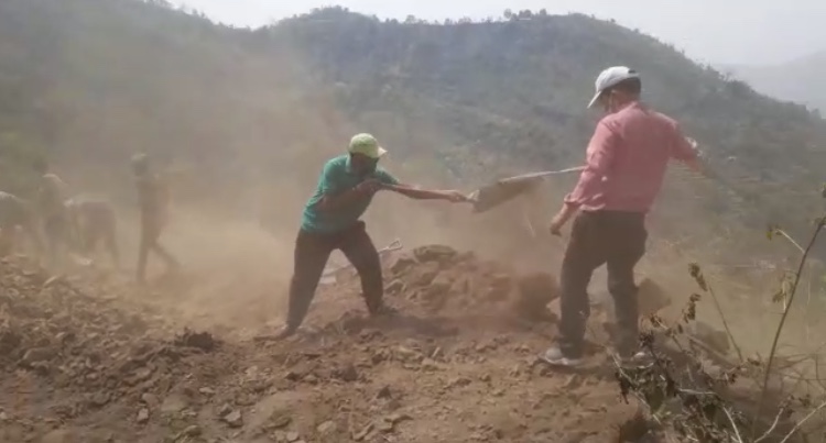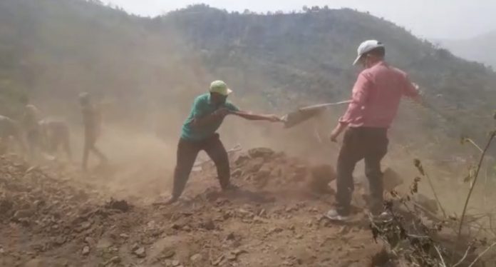 नैनीताल – रिपोर्ट -कांता पाल – नैनीताल के भीमताल ब्लॉक में खड़की के ग्रामीणों ने लॉक डाउन के दौरान मिली छूट में अपने गांव को जाने वाले रास्ते का निर्माण करना शुरू कर दिया है, लॉक डाउन के समय सोशल डिस्टेंसिंग का ख्याल रखते हुए गांव के युवकों ने फावड़ा, बेलचा, सम्बल लेकर रास्ता बनाने का कार्य शुरू किया। नौकुचियाताल के सिलौटी से खड़की गांव तक की दूरी 3 किलोमीटर है। ग्रामीण द्वारा इस पैदल मार्ग को श्रमदान से दो पहिया वाहन के लिए रास्ता तैयार कर रहे है। ग्रामीणों ने बताया कि ब्लाक प्रमुख द्वारा छः लाख की राशि इस रास्ते के लिए दी गई थी लेकिन इसका रखरखाव नहीं हो पाया जिस कारण मार्ग झड़ियों व मिट्टी से बंद हो गया था। ग्रामीणों द्वारा लॉक डाउन के समय का सदुपयोग कर इस पैदल मार्ग को दोपहिया वाहन के लिए बनाया गया, अब गांव के युवाओं द्वारा छोटी गाड़ियों के लिए भी गांव तक लाने के मकसद से मार्ग के चौड़ीकरण किया जा रहा है । क्षेत्र में करीबन 40 परिवार निवास करते हैं। वहीं ग्रामीणों द्वारा सोशल डिस्टेंसिंग बनाते हुए रास्ते का निर्माण करने की पहल का हर कोई सराहना कर रहा है।